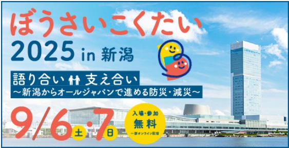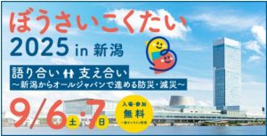 令和7年9月6日(土)、7日(土)新潟市の朱鷺メッセ新潟コンベンションセンターにおいて、ぼうさいこくたい2025が「語り合い・支え合い~新潟からオールジャパンで進める防災・減災~」をテーマに開催されました。