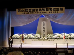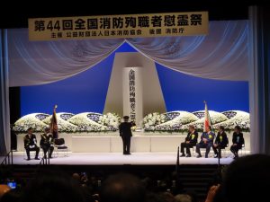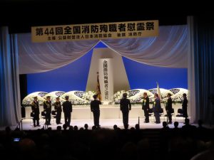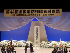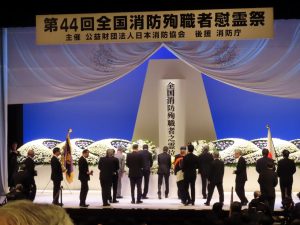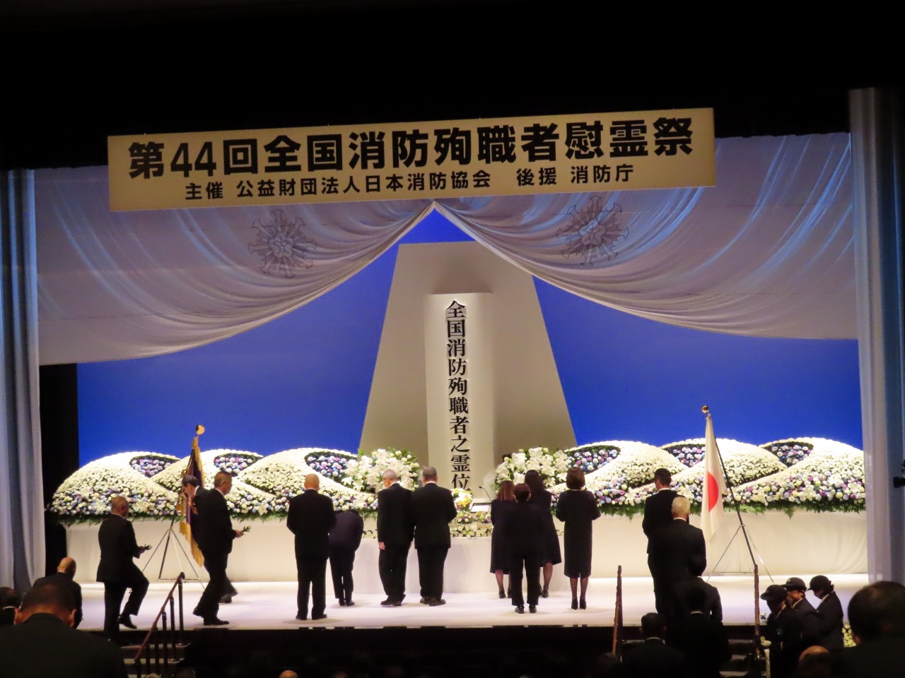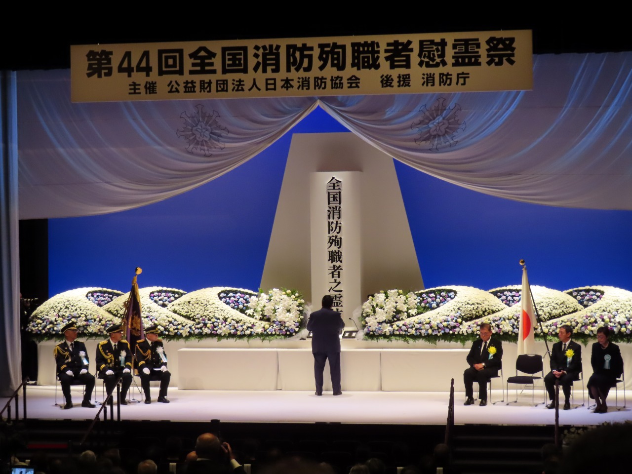 9月11日(木)、東京都港区虎ノ門の日本消防会館ニッショーホールにおいて、第44回全国消防殉職者慰霊祭が執り行われました。