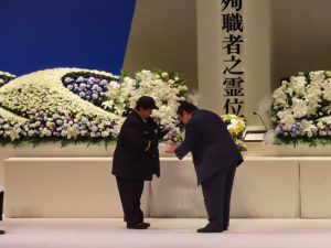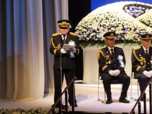 続いて(公財)日本消防協会 秋本会長の式辞の後、ご来賓の石破茂内閣総理大臣、村上誠一郎総務大臣、そしてご遺族代表の青木様から追悼のお言葉がありました。